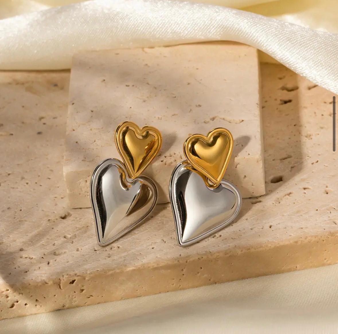 Each earring is meticulously crafted from high-quality materials to ensure durability and brilliance. Whether worn as a declaration of love or simply to add a touch of sophistication to your ensemble, these double heart earrings are sure to become a cherished addition to your jewellery collection.